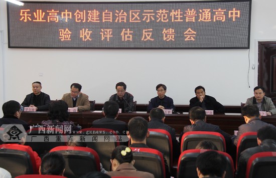 专家组在完成对乐业高中创建自治区示范性普通高中各项工作的检查后,召开反馈会。广西新闻网通讯员黄禹瑞 田敏翠 宁秀金 摄